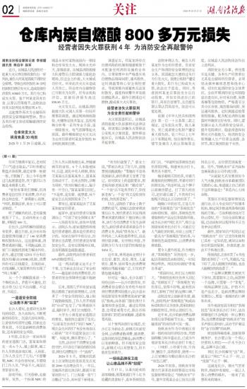 仓库内炭自燃酿800多万元损失