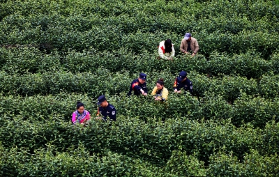 当天,民警来到铁路沿线的湖南古丈县默戎镇苗乡,发现不少村民正在铁路附近茶园里采茶,便主动上前进行帮助。民警一面采茶,一面对茶农们进行安全宣传,告诉她们春季在铁路边耕作时,不要违章跨越铁路,防止安全事故的发生。