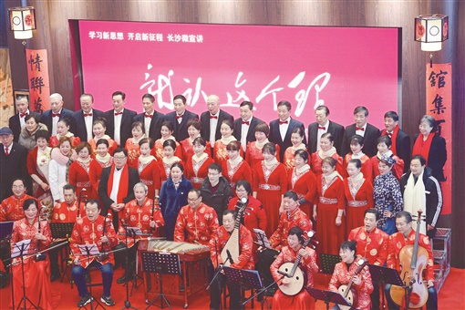 1月7日,湖南雨花非遗馆,群众文艺团队齐唱《我们的中国梦》。当天,长沙市雨花区举办“就认这个理”——学习贯彻党的十九届五中全会精神微宣讲活动,群众通过自编自演的文艺节目宣讲全会精神。湖南日报记者 徐行 通讯员 戴林枫 摄影报道
