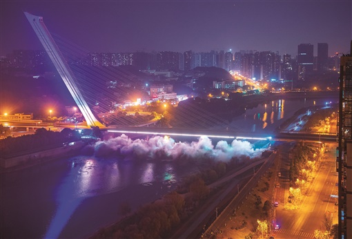 湖南日报1月10日讯(记者 郑旋 通讯员 李旭)“倒计时5、4、3、2、1……起爆!”随着一声巨大的轰鸣响起,滚滚浓烟升上夜空。今晚11时左右,位于长沙市开福区的洪山庙老桥完成爆破拆除。至此,一座承载了逾50年历史记忆的桥梁正式与长沙人告别。