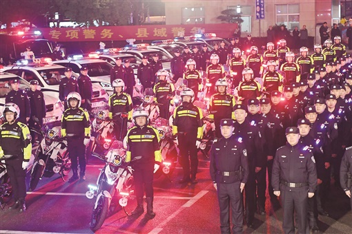 湖南日报·新湖南客户端1月13日讯(记者 唐亚新 通讯员 刘彬)1月13日晚9时,长沙市公安局天心分局院内前坪警灯闪烁,400余名警力、30台巡逻警车、40辆交警铁骑警容严整、蓄势待发。随着一声令下,警笛鸣响,各路参战警力迅速奔赴辖区各任务现场。