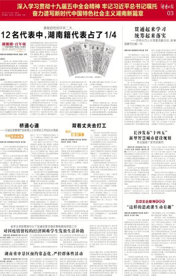 第03版:深入学习贯彻十九届五中全会精神 牢记习近平总书记嘱托 奋力谱写新时代中国特色社会主义湖南新篇章