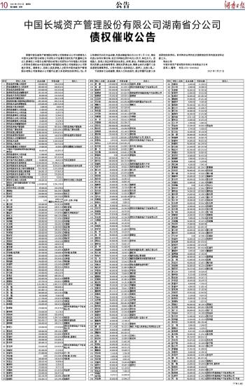 中国长城资产管理股份有限公司湖南省分公司 债权催收公告