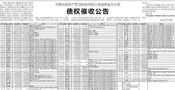 中国长城资产管理股份有限公司湖南省分公司 债权催收公告
