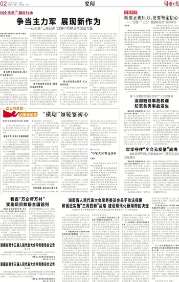 第03版:深入学习贯彻十九届五中全会精神 牢记习近平总书记嘱托 奋力谱写新时代中国特色社会主义湖南新篇章
