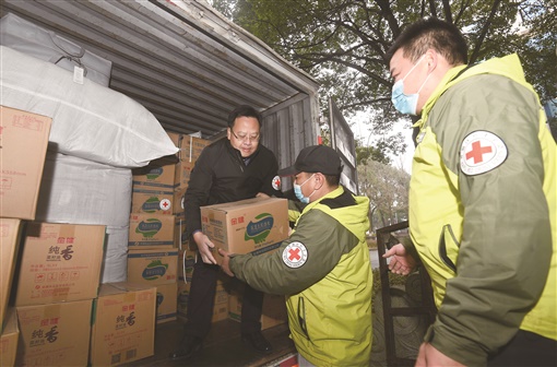 1月22日上午,工作人员将爱心物资送到长沙市开福区红十字会。当天,长沙市红十字会2021年“博爱送万家”活动启动。该活动筹集爱心款物总价值846万元,全市各级红十字会正组织人力物力,及时将救助款物送到困难群众手中。