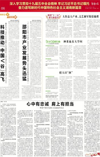 第06版:深入学习贯彻十九届五中全会精神 牢记习近平总书记嘱托 奋力谱写新时代中国特色社会主义湖南新篇章