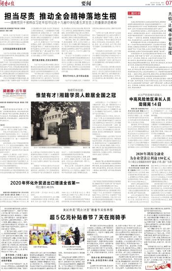 第06版:深入学习贯彻十九届五中全会精神 牢记习近平总书记嘱托 奋力谱写新时代中国特色社会主义湖南新篇章
