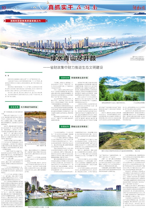 小康全面不全面,生态环境质量很关键。“十三五”期间,湖南财政牢固树立生态优先、绿色发展理念,集中财力推进生态文明建设。