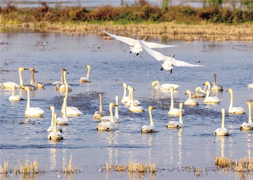 据林业部门监测,进入“十三五”以来,洞庭湖区越冬候鸟每年增长2万余只,总数达24.7万只。中华秋沙鸭、小白额雁、白鹤、小天鹅、白鹳等珍稀鸟类频繁现身,见证湖区生态环境持续改善。