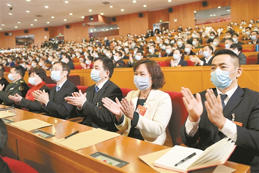 1月29日,大会表决通过各项决议后,代表们热烈鼓掌。 湖南日报·新湖南客户端记者 辜鹏博 摄 |