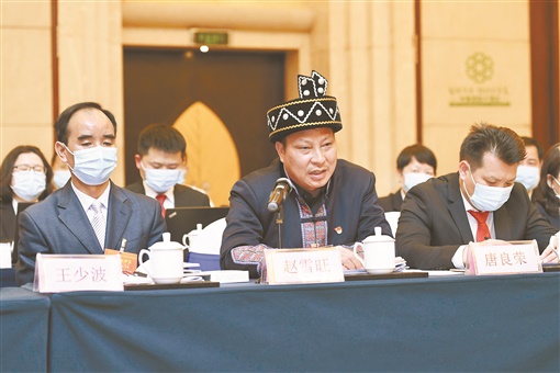 | 1月28日,赵雪旺代表(中)在永州代表团分组讨论会上就增加农村医保资金投入建言。湖南日报·新湖南客户端记者 辜鹏博 摄 |