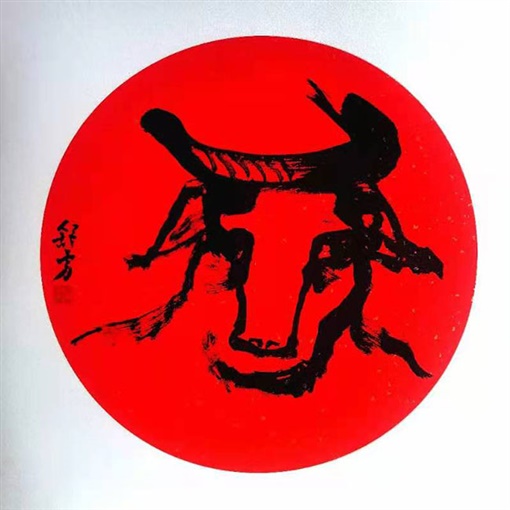 “牛”是世界艺术家们热衷表现的题材。现代艺术的奠基者毕加索,一生中无数的创作与牛有关。他用自行车把手和车座组合起来,完成了一件举世闻名的现代艺术作品《牛头》,成为了打开现代艺术之门的标志性作品。而在中国,历代画牛的画家也有很多,如唐朝韩滉的《五牛图》就是我国的十大传世名画之一,近现代画家齐白石、徐悲鸿、李可染、潘天寿等都是画牛大家。所以,要从牛这个题材来实现艺术的突破变得尤为艰辛。然而舒勇的作品《犇腾》借助中国大写意精神和国际性的抽象表现主义风格,把世界牛文化与中国生肖文化结合起来,以牛为媒介,以新时代为大语境,让中国大写意有了全新的高度和现代美学的形态,具有了强烈识别性符号学的意义。