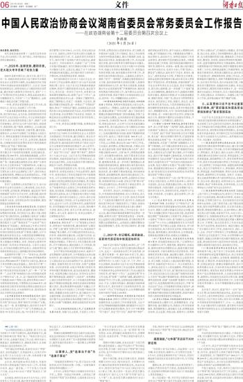 中国人民政治协商会议湖南省委员会常务委员会工作报告