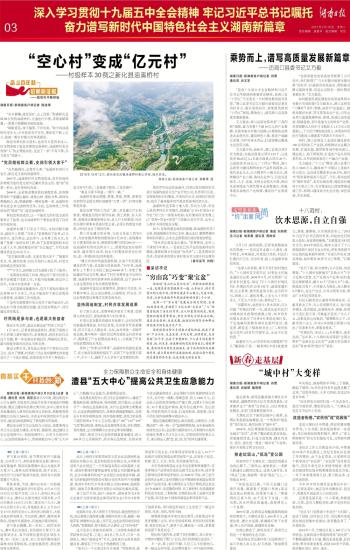 第03版:深入学习贯彻十九届五中全会精神 牢记习近平总书记嘱托 奋力谱写新时代中国特色社会主义湖南新篇章