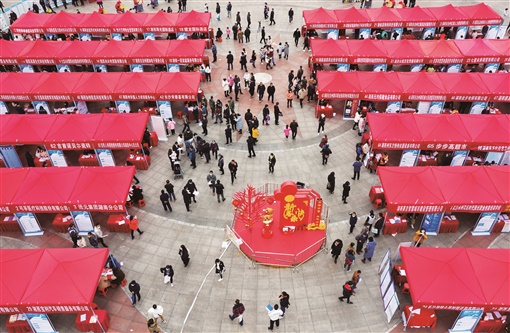 2月18日,湘西高新区,求职者在了解招聘信息。当天,湘西州启动2021年“春风行动”招聘会,300余家用工企业为求职者提供5.7万个就业岗位。 张术杰 摄