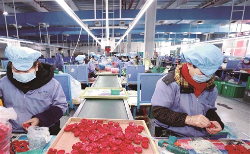 2月19日,张家界高新技术产业开发区占生塑胶制品有限公司车间内,工人们在赶制玩具订单。春节假期过后,该开发区企业迅速恢复正常生产状态,开足马力加紧订单生产,满足市场需求。吴勇兵 摄