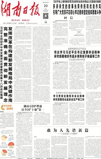 第03版:深入学习贯彻十九届五中全会精神 牢记习近平总书记嘱托 奋力谱写新时代中国特色社会主义湖南新篇章