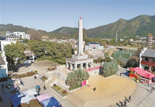 93年光阴荏苒。桂东人民在旱田旧址上修建了宏伟的“第一军规广场”,一座高大的“三大纪律八项注意”纪念碑矗立在广场中央,纪念碑的四周各有一块大型浮雕,真实再现了毛泽东颁布《三大纪律六项注意》的历史场景。见证了这段历史的万寿宫和沙田村戏台环绕在纪念碑周围,仿佛还在诉说着当年的故事。
