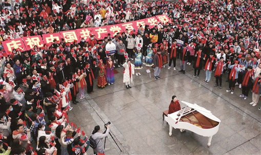 ③ 南华大学师生在开学主题活动上齐唱《没有共产党就没有新中国》。曹正平 张楞严 摄影报道