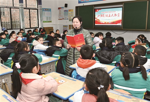④ 洞口县高沙镇中心小学,教师在给学生上新学期开学第一课——“弘扬爱国精神,争做时代先锋”,通过重温戍边英雄事迹,学习了解新时代卫国戍边英雄誓死保卫祖国的牺牲精神和英雄气概。滕治中 米赛男 摄影报道