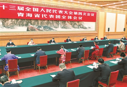 3月7日,中共中央总书记、国家主席、中央军委主席习近平参加十三届全国人大四次会议青海代表团的审议。新华社发