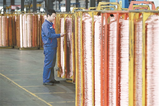 3月8日,金杯电工衡阳电缆有限公司生产车间,工作人员正在忙碌作业。今年,该企业产销两旺,1至2月产值同比增长1倍,销售同比增长2.4倍。罗茂盟 摄