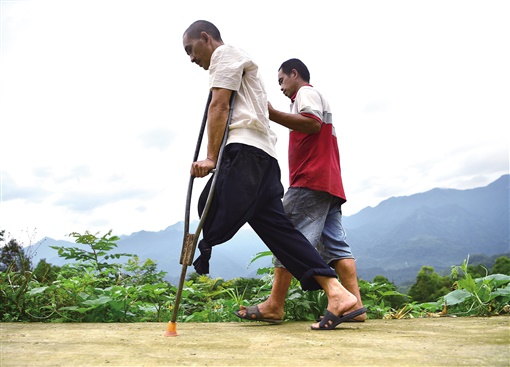 在石门县壶瓶山镇长岭村,每天都可看到“肢残兄弟”王均波、王均尾相互搀扶,在猪栏里喂猪、在田地里耕作的身影。这两兄弟由于家境贫寒,都在外打工。先是王均尾右手被电机卷伤致残,后来王均波在做陶瓷时,左大腿被卷扬机搅断,造成高位截肢。
