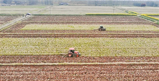 3月9日,桃源县木塘垸镇正洪社区王排洲片,农耕机在田间翻地,轰鸣的机器声奏响了春耕生产的“协奏曲”。