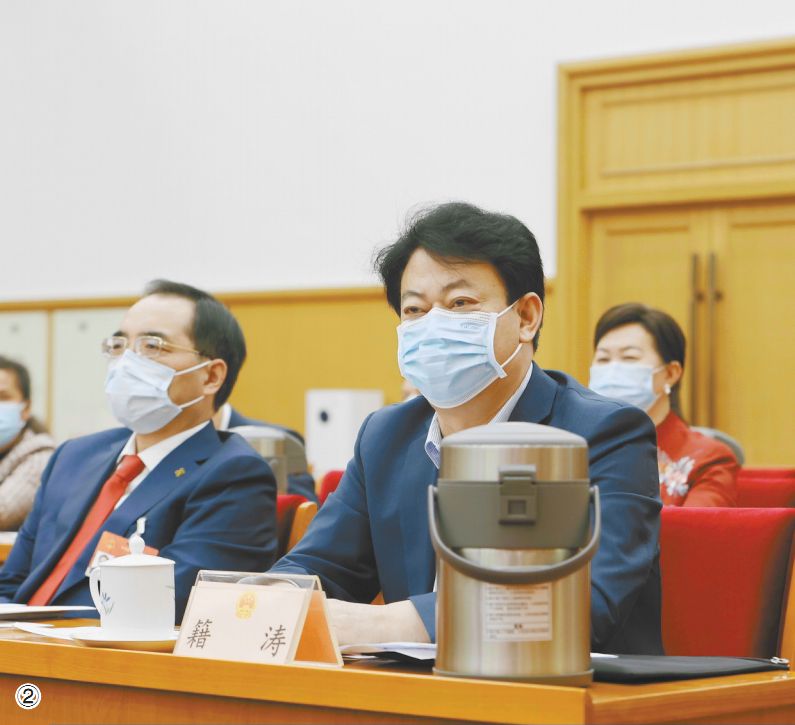 图② 湖南代表团代表在审议政府工作报告时,认真听取发言。