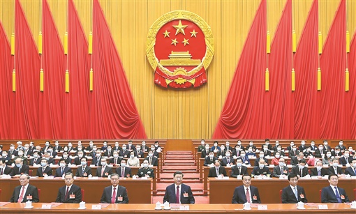 习近平、李克强、汪洋、王沪宁、赵乐际、韩正、王岐山和大会主席团成员在主席台就座。
