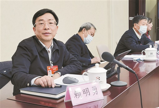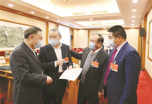 3月5日下午,赖明勇委员(左一)在全国政协十三届四次会议分组讨论时发言。