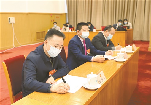 3月11日,湖南代表团在驻地举行联组会议,代表们认真听取发言并做记录。