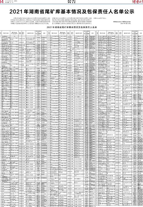 2021年湖南省尾矿库基本情况及包保责任人名单公示