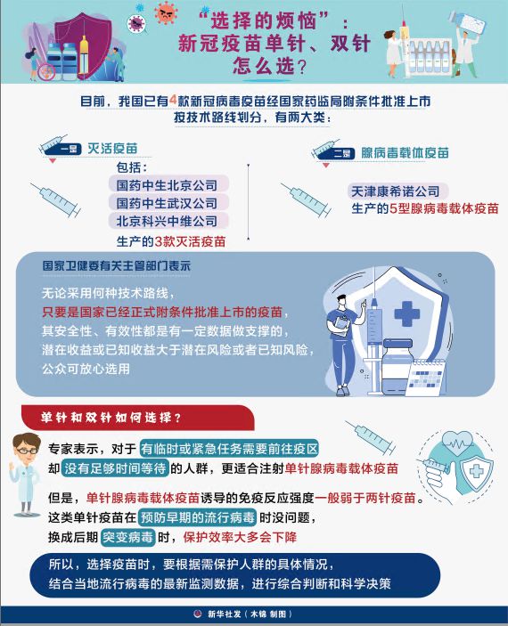 当前,海外疫情依然严峻,国内疫情得到有效控制。在接种新冠病毒疫苗的选择上,不少民众遇到了“选择的烦恼”:要不要打疫苗?打哪个品种的疫苗更好?单针和双针如何选择?对此,新华社记者采访了有关主管部门和业内权威专家。
