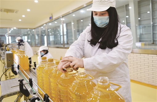 3月19日,安化县湖南金叶油业有限公司,工人在茶籽调和油加工生产线上忙碌。目前,全县已发展粮油种植专业合作社及种粮大户141家,规模以上粮油加工企业10家,粮油工业总产值达2亿元,有效实现了粮油产业转型升级、高质量发展。