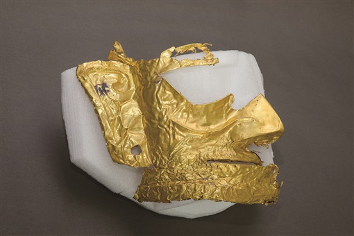 占地仅3.5平方米的5号“祭祀坑”一片金光闪闪——考古队员已从此处清理出多件金器和60余枚带孔圆形黄金饰片、数量众多的玉质管珠和象牙饰品。经专家初步判断,这些有规律的金片和玉器与黄金面具形成缀合,推测为古蜀国王举行盛大祭祀仪式时所用。