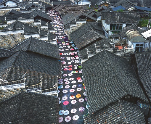 三等奖:《彩伞·黑瓦·韵味》——龙山县八面山下的里耶古镇。 宋才华 摄