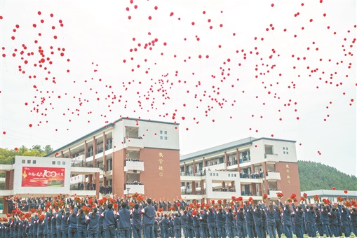 3月23日,东安县澄江中学举行“唱支山歌给党听”快闪活动。师生们用歌声追忆红色历史,抒发对中国共产党的深情与祝福,表达了新时代永远跟党走的坚定信仰。严洁 杨荣国 摄影报道