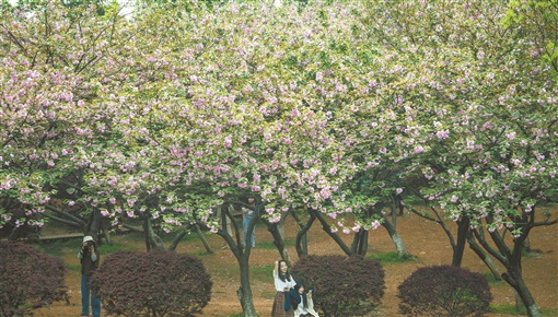 3月29日,湖南科技大学校园里,游客在樱花园游玩。该校樱花园面积约1万平方米,每年三月下旬到四月中旬为最佳赏樱期。