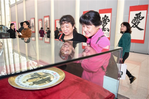 值得一提的是,此次参展的作品多为首次公开展出。如梁六奎、林家湖1958年为毛主席设计的栀子花军帽顶胜利杯,邓文科设计的毛主席用瓷红山茶花卉纹烟灰缸设计手稿等。此外,展览中还有王立新创作的革命家人物画系列作品、林家湖的张家界山水写生国画等书画作品。