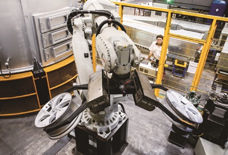 已投运近四年的长沙戴卡与新建成的戴湘二期项目在同一产业园内,产品定位不同,但设备、工艺等都采用了中信戴卡自主研发的核心技术。为了能最大化提升项目产能,使两厂之间实现特殊工艺、仓储区等配套和关键设备的共享,园区出资上千万为企业修建了一条内部道路,彻底打通了一期和二期的阻碍。也就是这条路,将使得两期项目从1400万产能冲刺至2000万产能,成为全球无与伦比的铝车轮生产基地。