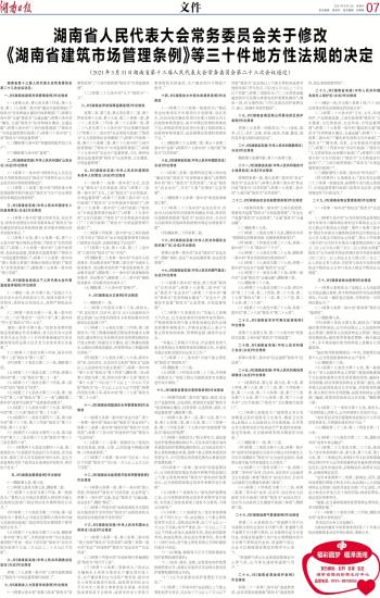 湖南省人民代表大会常务委员会关于修改《湖南省建筑市场管理条例》等三十件地方性法规的决定