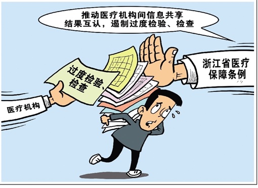 浙江省人大常委会近日审议通过《浙江省医疗保障条例》,提出要提高统筹层次,“升级”参保人员待遇,推动医疗机构间信息共享结果互认,遏制过度检验、检查。
