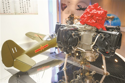 4月5日,中国航发南方工业有限公司展馆内,M-11型航空发动机身披绸缎大红花,如同一位受表彰的英模。