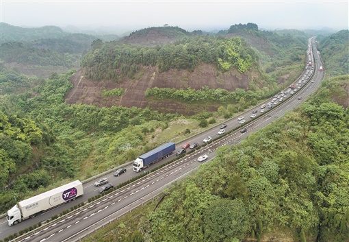 4月5日17时左右,武深高速茶陵县路段,往深圳方向的车辆排起了长龙,车行缓慢。当天是清明小长假最后一天,省内多条高速公路出现返程高峰。