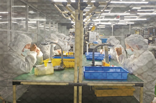 4月6日,长沙雨花经开区湖南长步道光学科技有限公司,工人在工业镜头生产线上忙碌。该企业自主研发的1.5亿像素工业镜头,为全球首创。其中360°内外壁测量用镜头和新一代半导体、传感器芯片光刻机用镜头,均打破国外垄断,填补了国内空白。 湖南日报·新湖南客户端记者 李健 摄