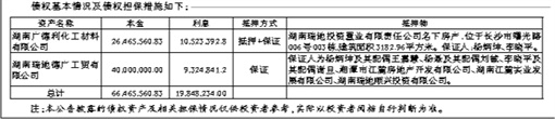 债权金额:截至2021年3月20日,中国华融资产管理股份有限公司湖南省分公司拥有对湖南瑞地德广工贸有限公司债权的本金40,000,000,00元,利息10,523,392.8元;对湖南广德利化工材料有限公司债权的本金26,465,560.83元,利息9,324,841.2元。(如本金余额与借款合同或借据金额不一致,以借款合同、借据、法院判决为准。)
