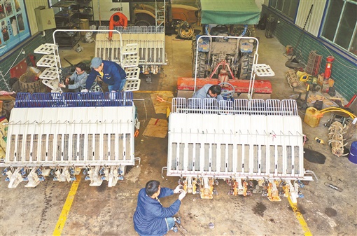 4月7日,南县南洲镇农机服务点,技术人员在检修农机。今年,该县组织农机专业技术人员深入到专合社和农机户,已指导完成6000 余台(套)拖拉机、插秧机、耕整地机械等农业机械的检修、调试和维护,保障春耕生产,不误农时。