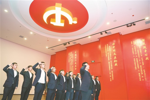 4月9日,湖南省委党校党性教育馆,中建三局总承包公司安装公司(中南)的青年党员代表重温入党誓词。连日来,该公司党总支开展“党史百年天天读”线上随时学活动,掀起学党史热潮。